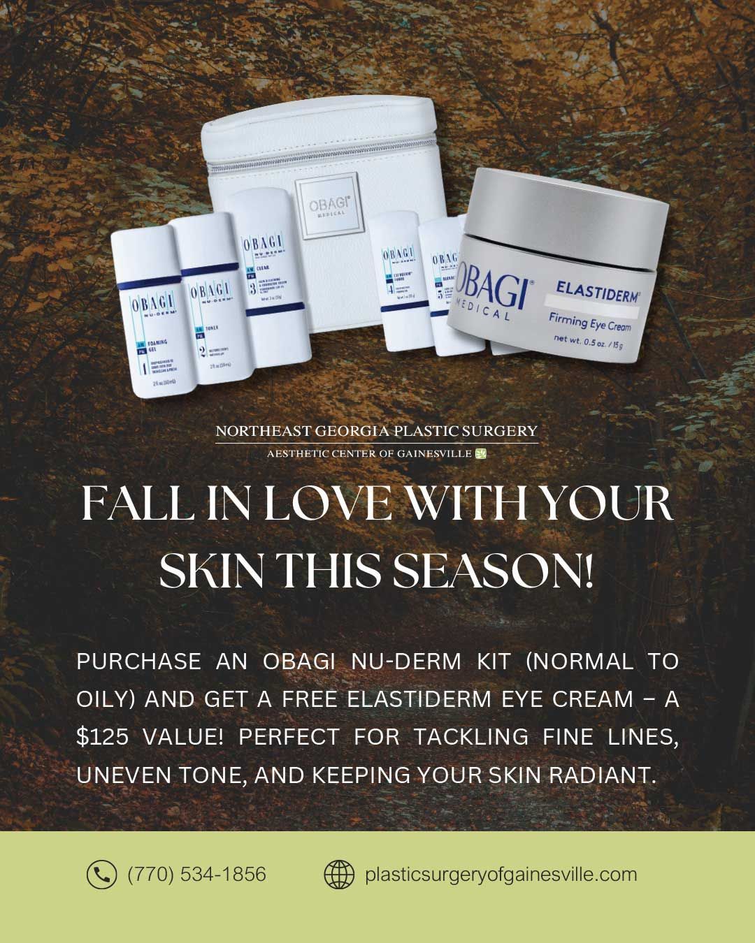 Purchase an Obagi NU-DERM kit (Normal to Oily) and get a FREE ELASTIDERM eye cream - A $125 VALUE! Perfect for tackling fine lines, uneven tone, and keeping your skin radiant.
