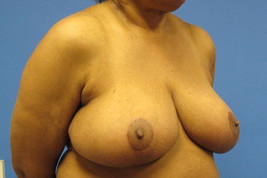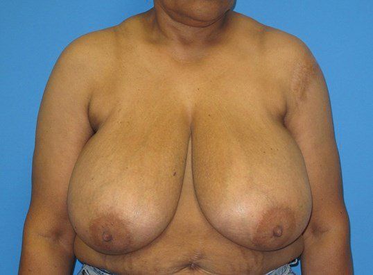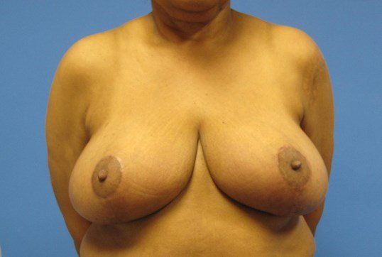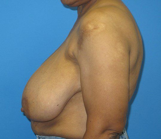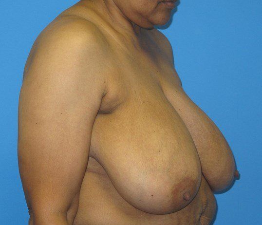 During breast reduction surgery, our plastic surgeon removed 818 grams from this patient's right breast and 794 grams from this patient's left breast. This procedure took about three hours for our surgeon. Postoperatively, this patient was very pleased with her surgical result and did not complain of back, shoulder, and neck pain. She felt that she was free of the physical limitations caused by her large breasts.