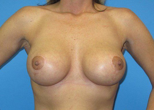 This patient presented herself to one of the plastic surgeons with the Aesthetic Center of Gainesville unhappy with the appearance of her breasts. She was interested in increasing the size of her breasts as well as changing the shape of them. This patient discussed these concerns with our plastic surgeon and decided to proceed with a bilateral mastopexy (breast lift) and bilateral submuscular breast augmentation with 275 cc saline breast implants. You can see from the before & after pictures why this patient was so happy with her surgical result postoperatively.
